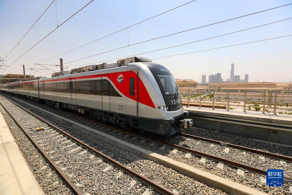 由中国企业承建的埃及斋月十日城轻轨铁路通车试运行(2022年7月3日摄)。新华社记者 隋先凯 摄